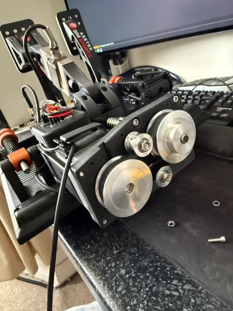 According to the builder, the converted pedal now offers complete software adjustability – everything from pedal travel and resistance to force curves can be tailored via software. The system also provides force feedback effects like ABS judder, similar to commercial active pedals. Importantly, the belt drive system eliminates any grinding sensation from the motor, a common concern with direct-drive DIY builds.