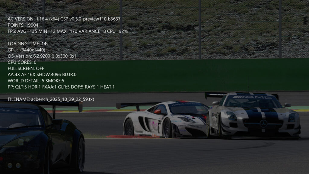 Every time you play AC, you’ll also be given a rundown of your last session’s performance, so you can judge how best to balance your graphics settings in future.