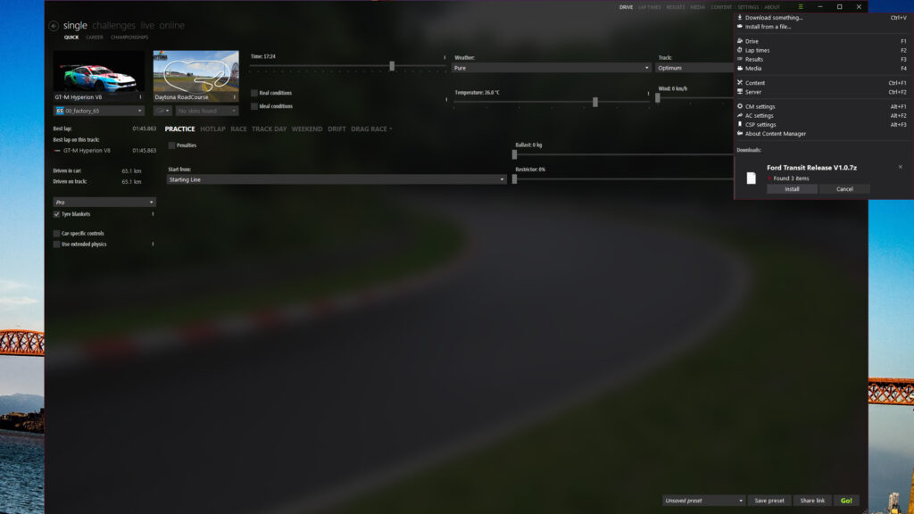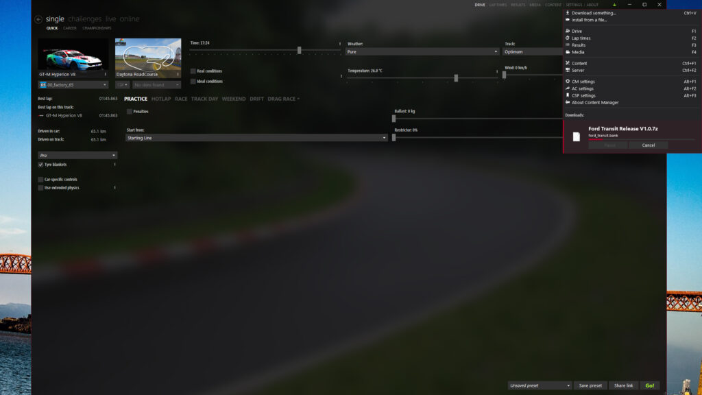 Content Manager acts as an alternative launcher for Assetto Corsa, but there’s more to it than that. Content Manager (CM) also adds a plethora of extra features and advanced settings to the game, including the ability to easily install car and track mods, liveries and other apps.